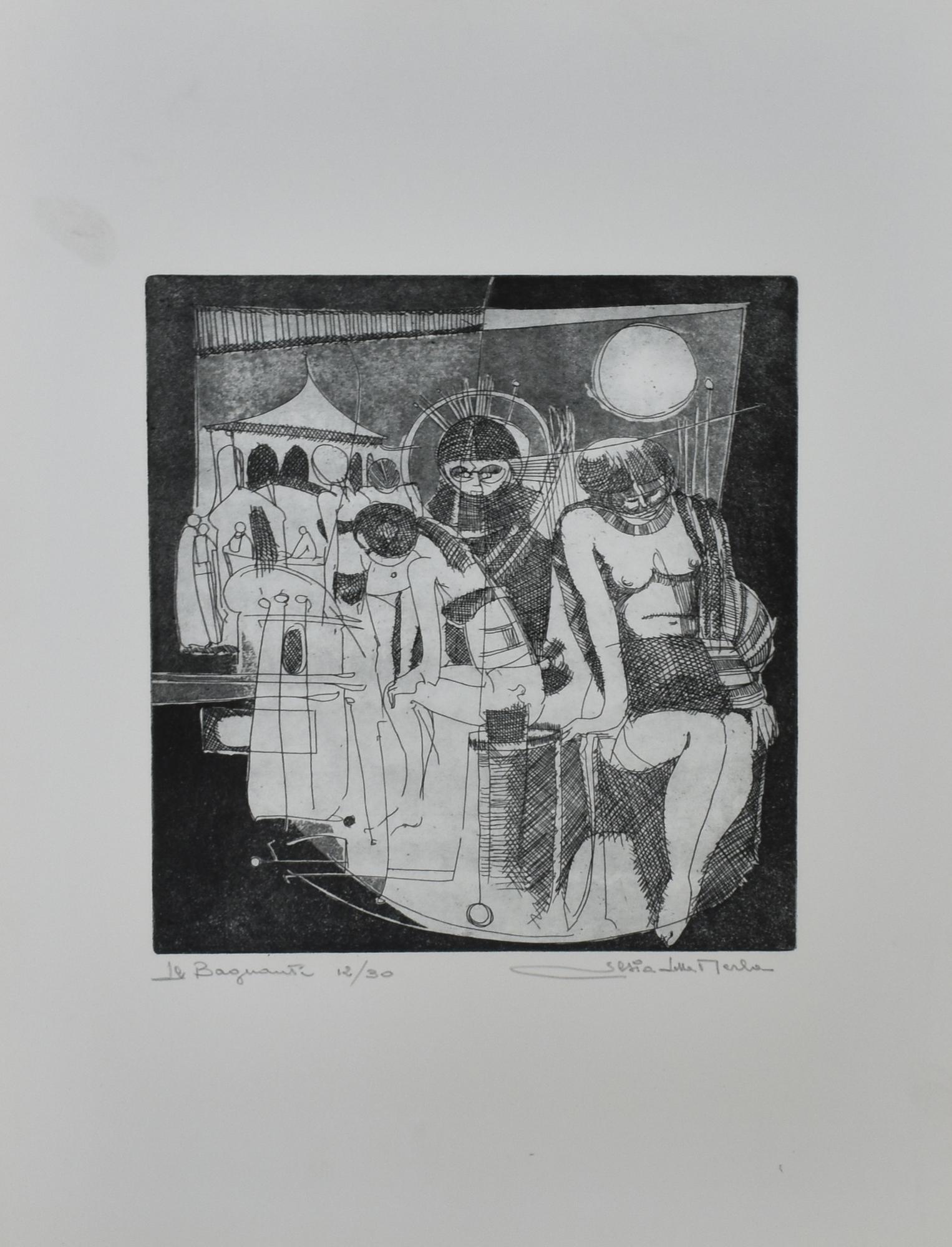 Gianni Sesia della Merla LE BAGNANTI incisione su carta, battuta cm 25x22; su...