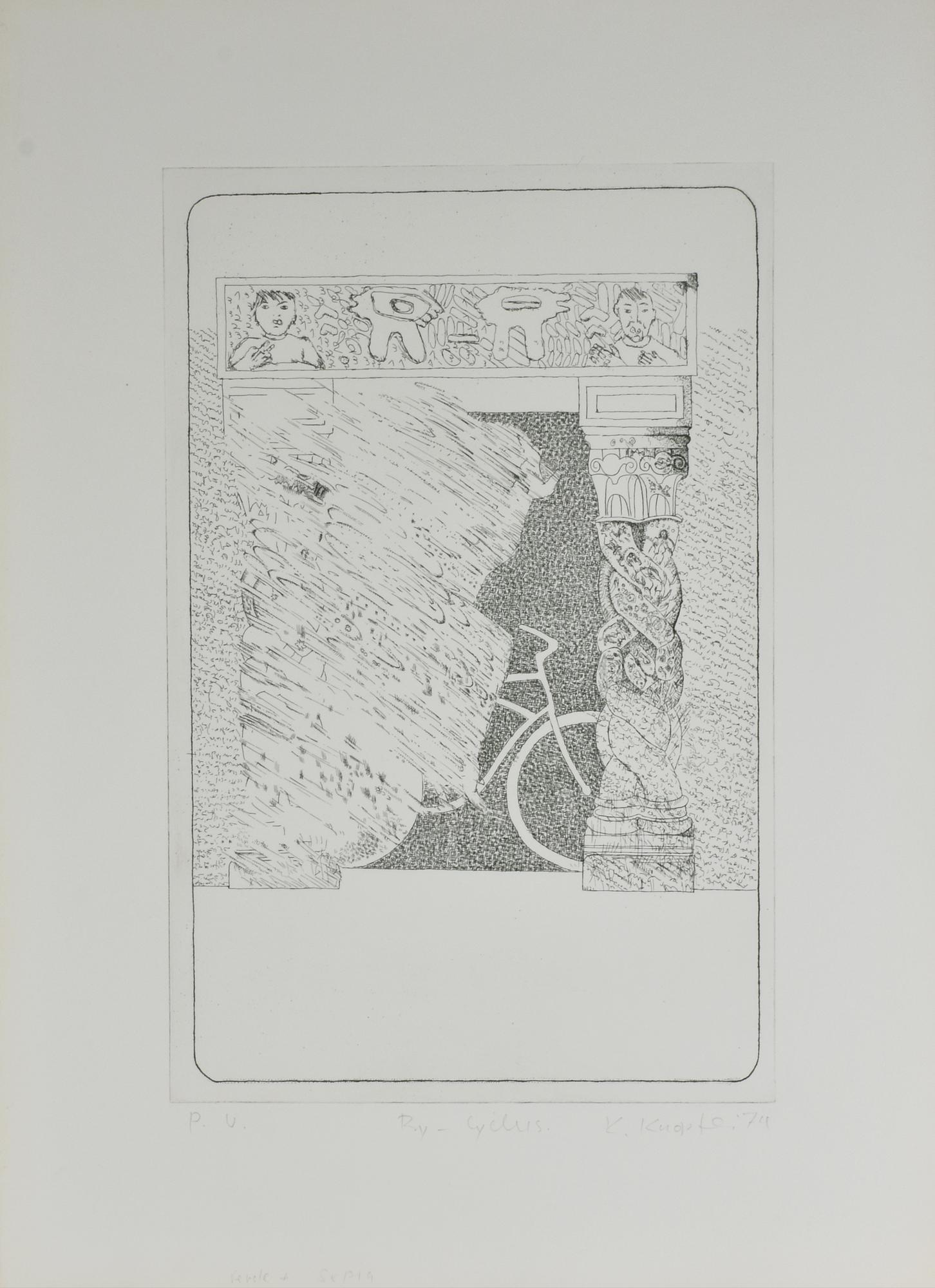 Lot 84 | Claudio Knopfli BY-CYCLUS acquaforte su carta, cm 70x50 (lastra cm 50x32);...