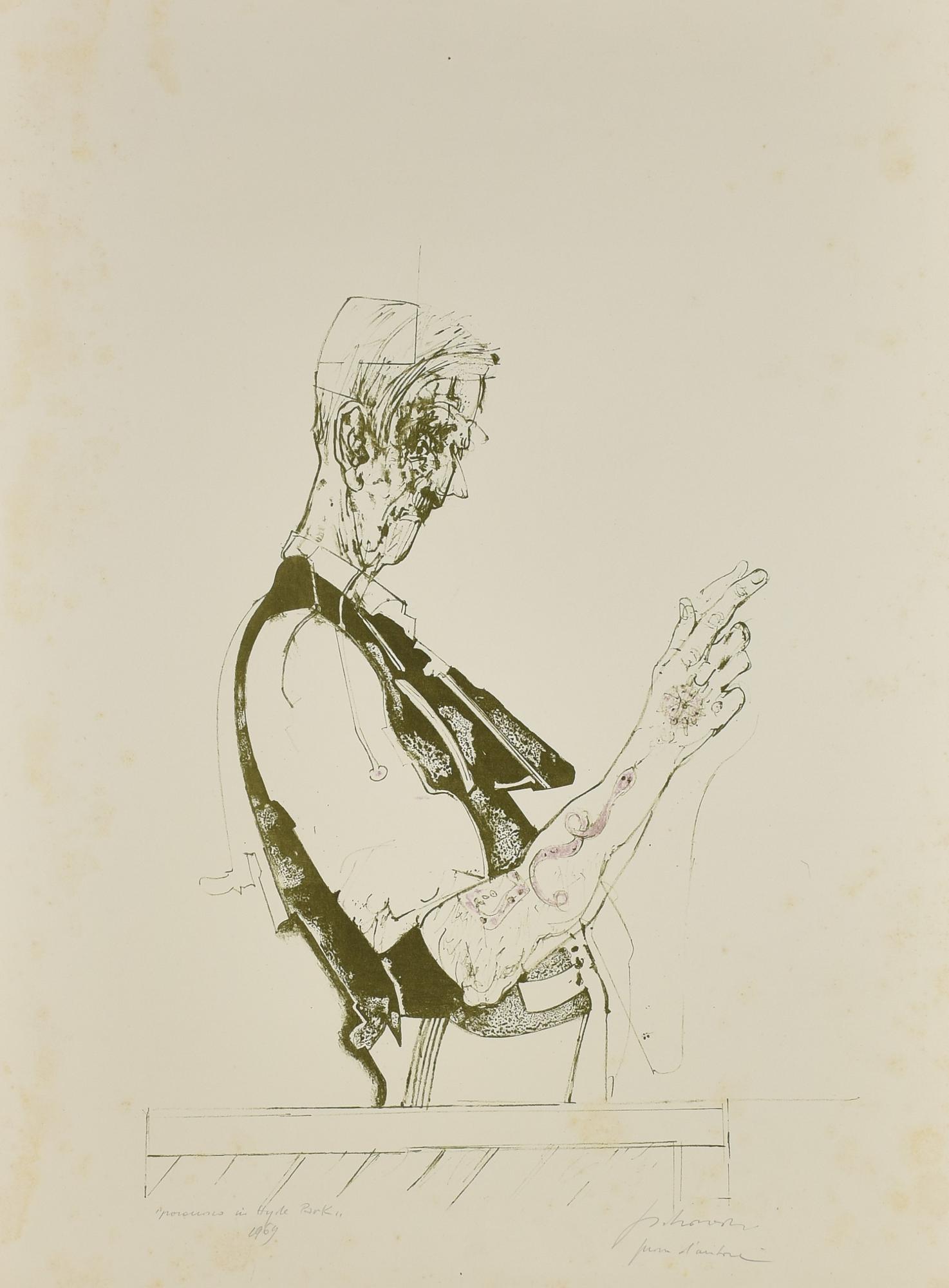 Pierangelo Tronconi PARANOICO IN HYDE PARK Litografia, mm 490x360, su foglio...