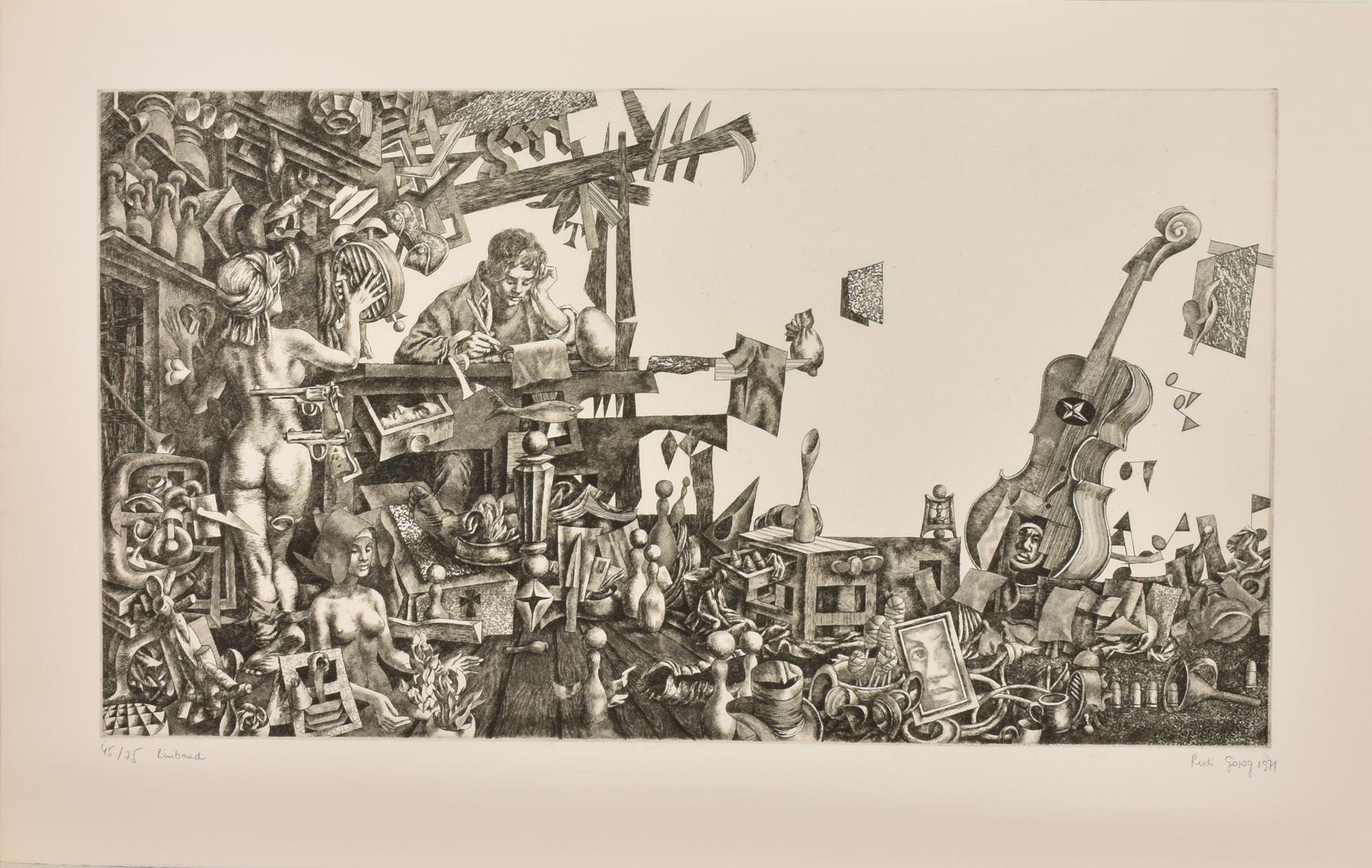 Rudi Gorog RIMBAUD incisione su carta, battuta cm 44x79,5, su foglio cm...