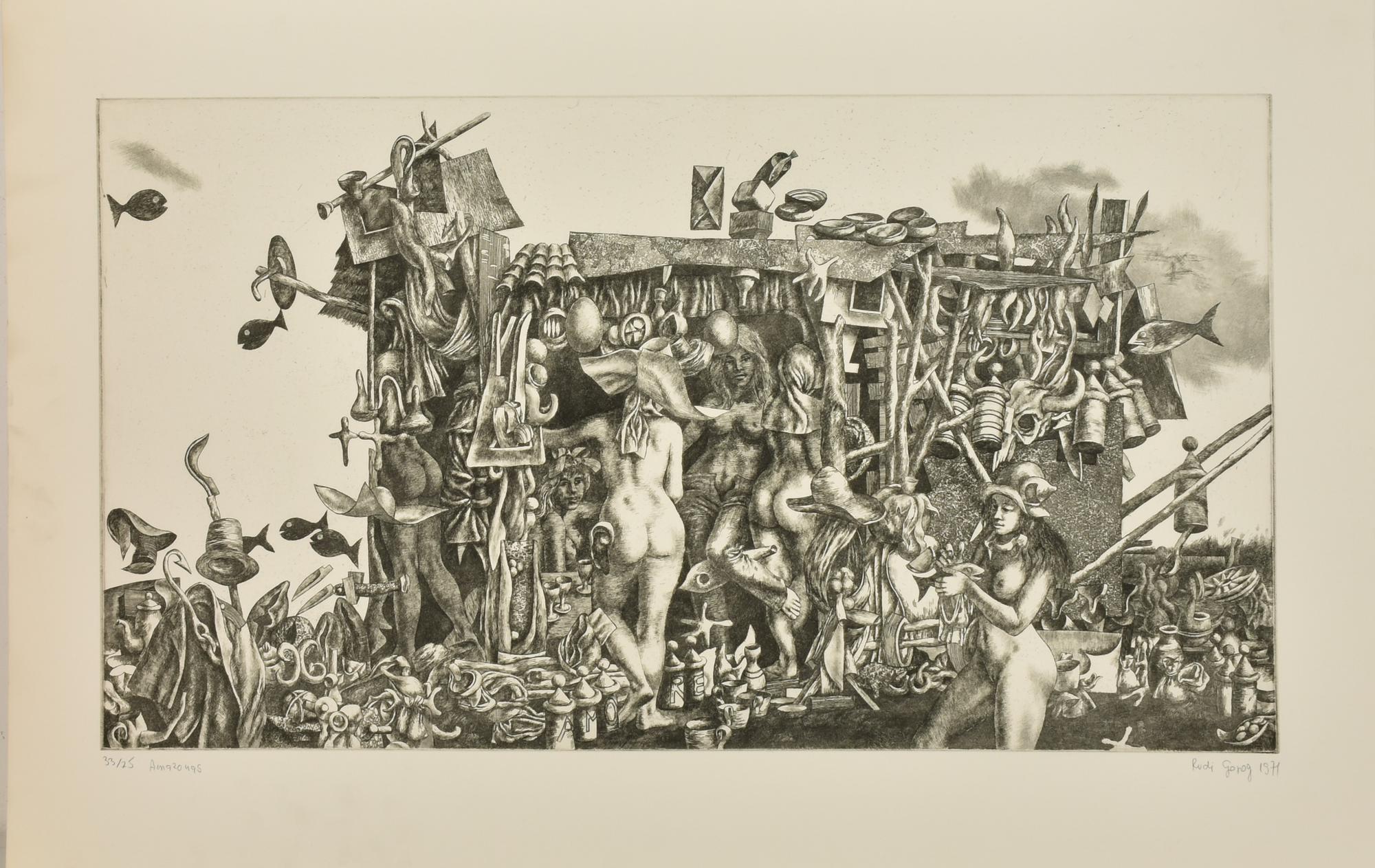 Rudi Gorog AMAZONAS incisione su carta, battuta cm 44x79,5, su foglio cm...