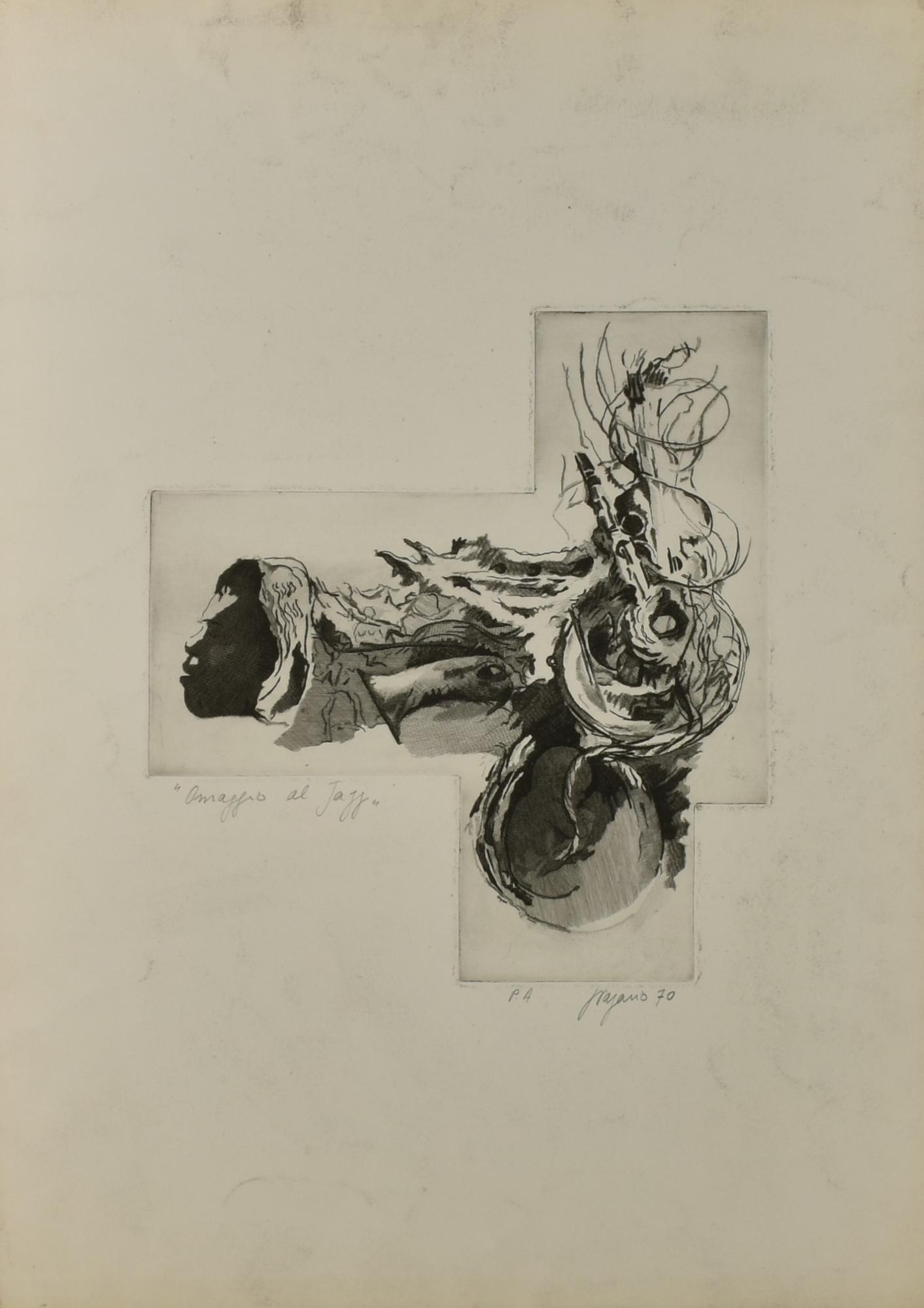 Gaudenzio Nazario OMAGGIO AL JAZZ incisione su carta, battuta cm 35x32, su...