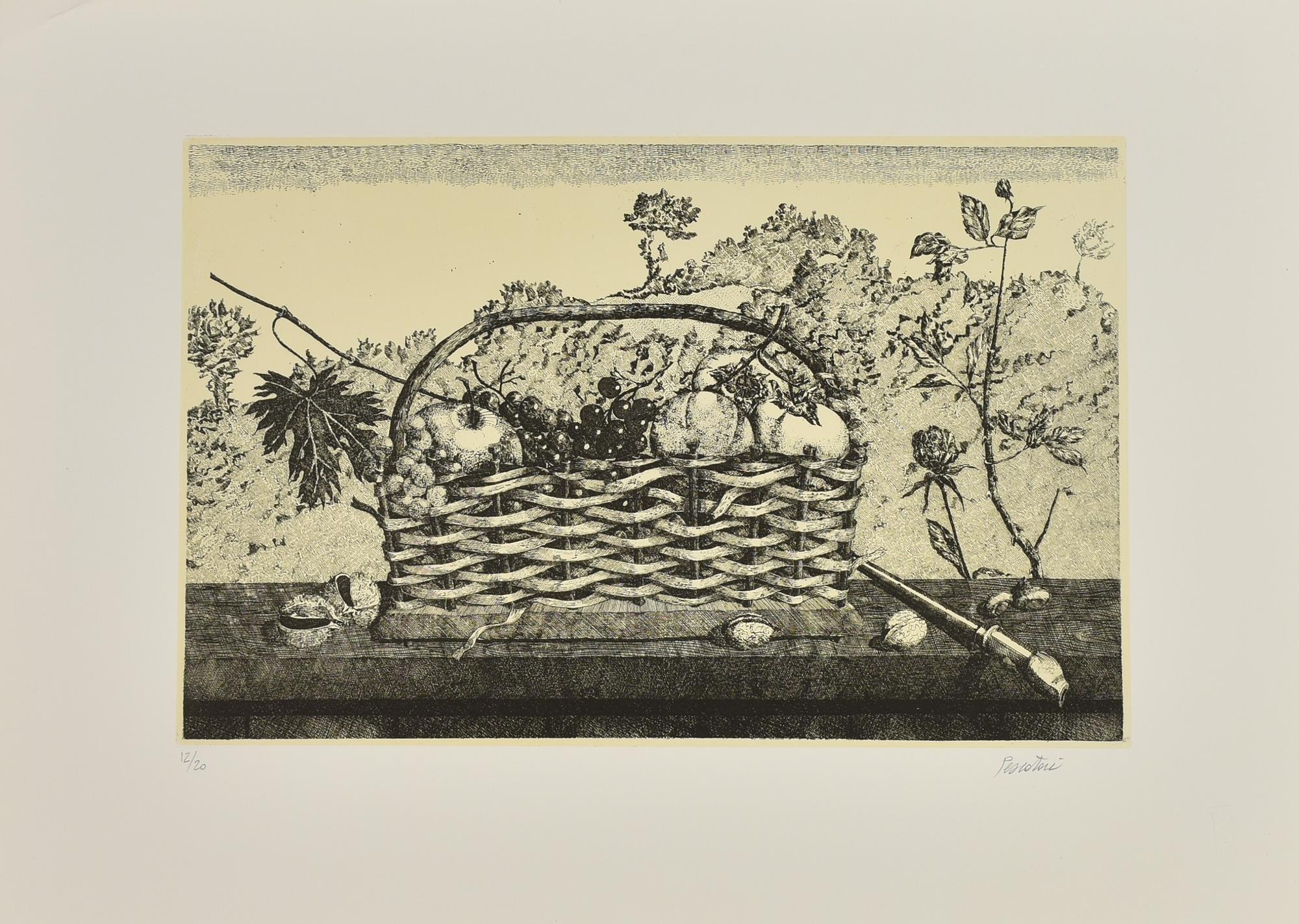 Carlo Pescatori CANESTRO Acquaforte con fondino, mm 323x500, su foglio cm...