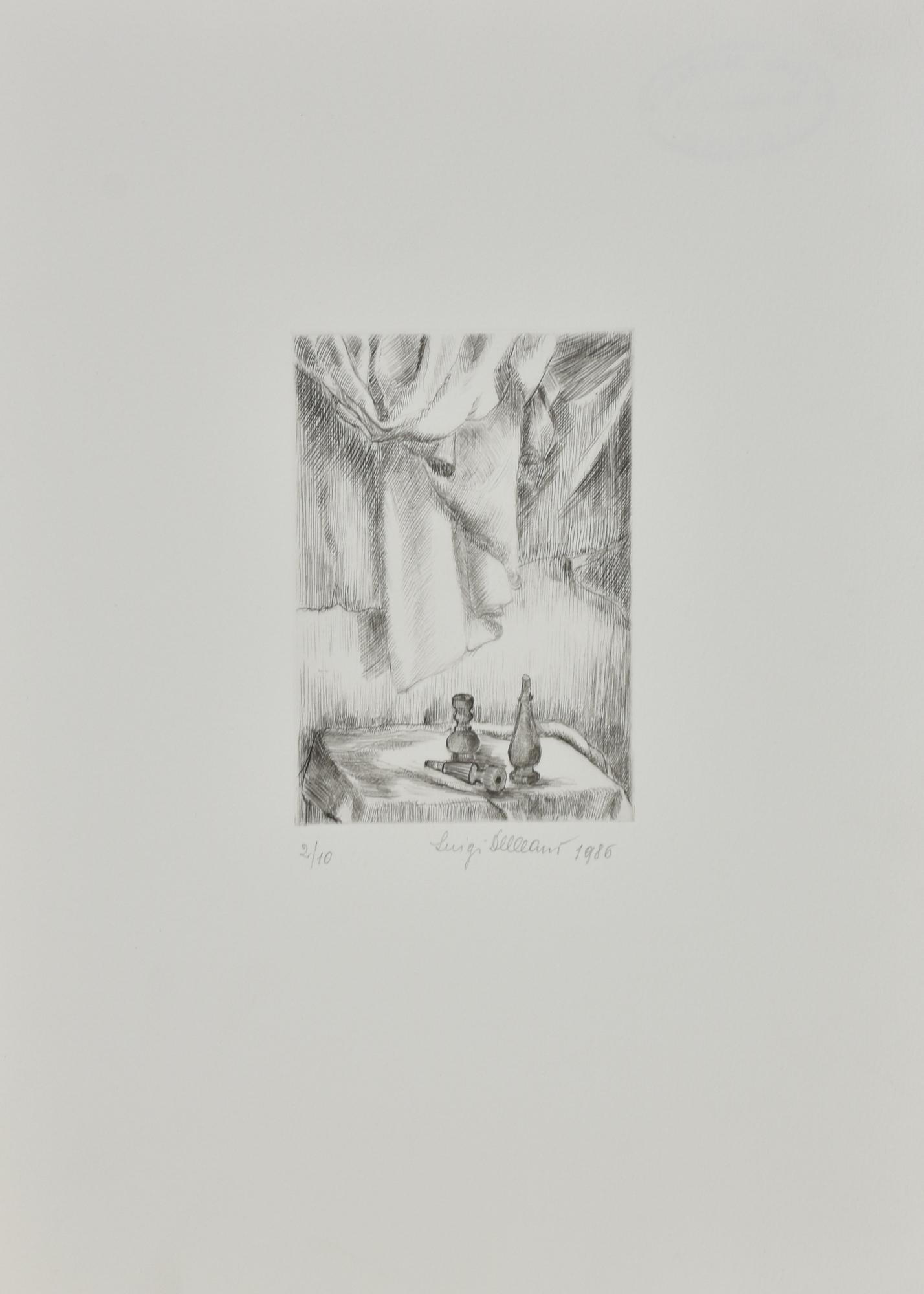 Luigi Delleani NATURA MORTA incisione su carta, battuta cm 13x9, su foglio...