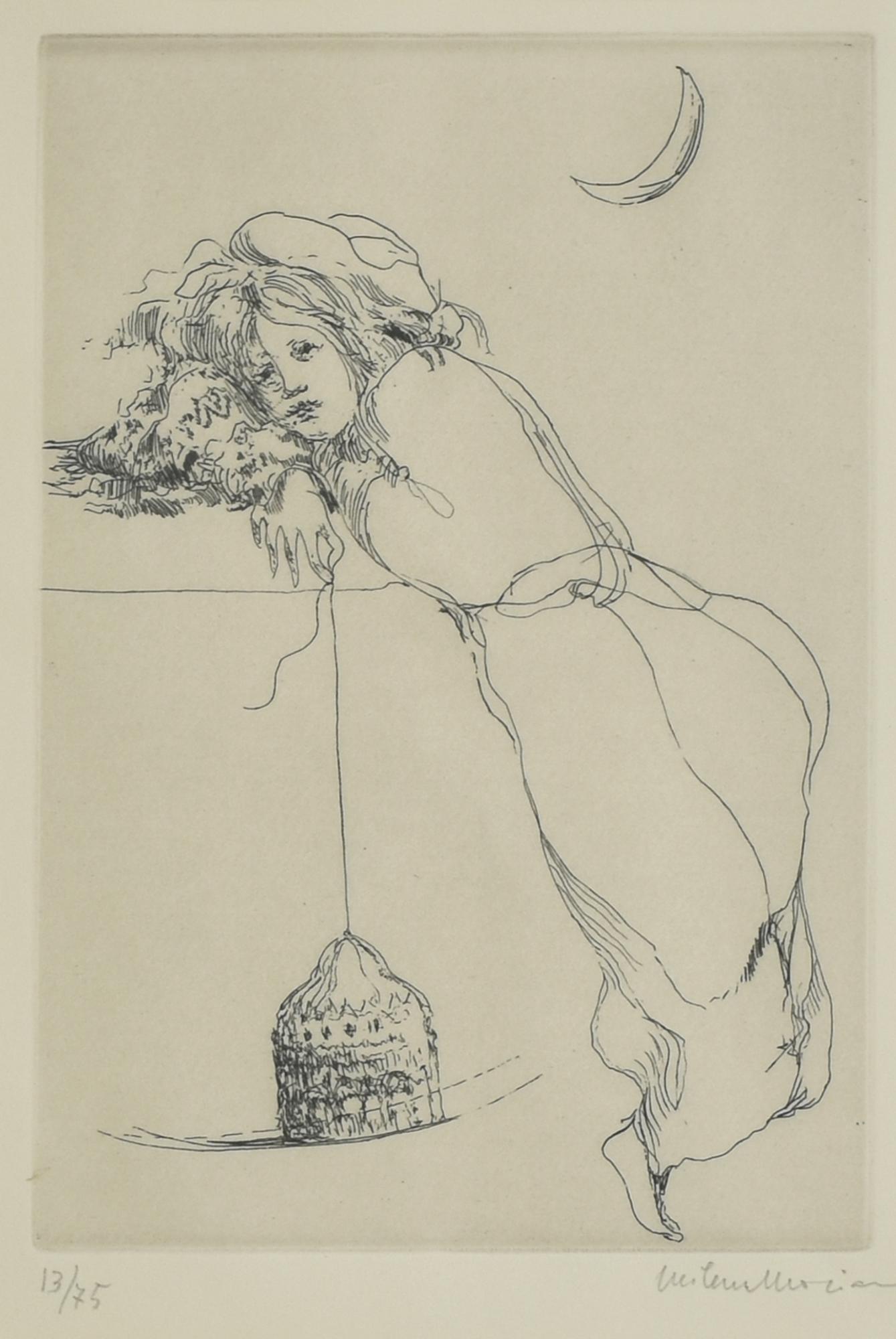 Milena Moriani GIOVANE DONNA CON PENDOLO incisione su carta, battuta cm...