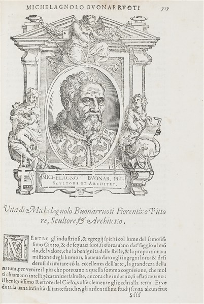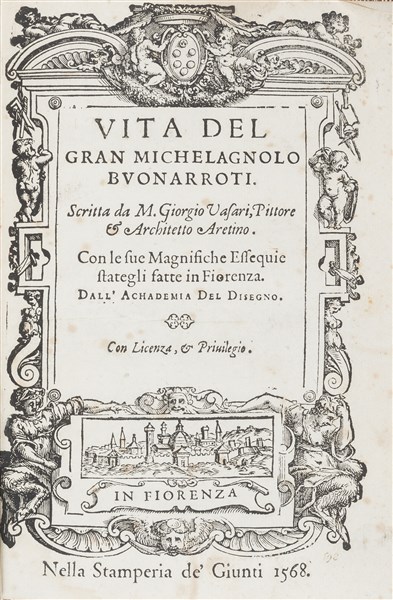VASARI, Giorgio (1511-1574) - Vita del gran Michelagnolo Buonarroti scritta da M. Giorgio Vasari, pittore et architetto aretino. Florence: Giunti, 1568.