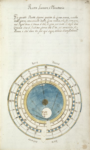 5 parti in un volume, folio(390 x 240mm). 71 carte, numerose illustrazioni, volvelle e tabelle in fine coloritura coeva, testo in scrittura corsiva (alcune sporadiche lievi macchie, piccolo strappo alla piega della tavola ripiegata). Legatura coeva in pergamena con titolo manoscritto al piatto (lievi difetti). Provenienza: Antonio Natta (firma di possesso, datata 1971); Giancarlo Caronni (ex libris).