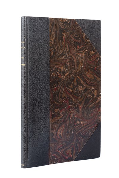 8vo(267 x 184mm). N. 26 da un'edizione di 225 copie. Buona copia: uno dei 10 su "Chine fort" in mezzo marocchino marrone firmato da G. Saravon. In fine è legato il prospetto della pubblicazione. Provenienza: Leonis Schuck (exlibris).