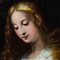 Alessandro Casolani fu allievo di Ventura Salimbeni e Cristoforo Roncalli detto il Pomarancio; nella sua arte si avvisano altresì influenze dal Barocci e dal Veronese. Opera nel contado senese, a Genova, Napoli e Pisa, ma di queste sue attività rimangono poche tracce. Sono in loco gli affreschi eseguiti intorno al 1600, in collaborazione con Pietro Sorri, nella Certosa di Pavia. Le opere più significative del suo percorso artistico sono legate alla sua città natale, come gli affreschi alla Torre del Mangia impreziositi da figure allegoriche, la Natività della Vergine nella chiesa di San Domenico, il Presepe realizzato per i Servi e il Martirio di san Bartolomeo per la chiesa del Carmine, gli affreschi nell’Oratorio di Santa Caterina. L’opera in esame ci riconduce all’interesse del Casolani per la pittura veneta: in questa tela in effetti emerge una visione cromatica vivida ed esuberante. A riprova della tesi attributiva, tra gli innumerevoli esempi, si vedano il volto di Maria in “Sacra famiglia con San Giovannino e Santa Caterina da Siena” e “Vergine annunciata” delle Collezioni Monte Paschi di Siena