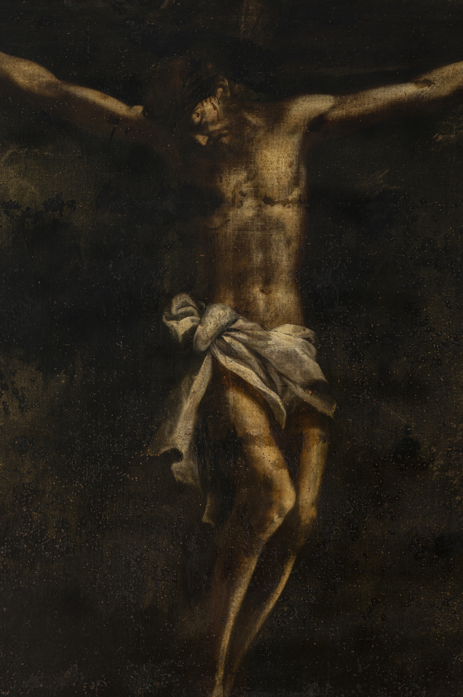L’opera mostra sotto il manto di vernice offuscata e i restauri delle qualità non trascurabili. Il forte pathos umano e divino di questo Cristo in croce, che si offre a noi nel buio soppraggiunto sul Calvario, ha richiami alla scuola milanese del Seicento, una scena guidata dai grandi maestri come Francesco Cairo, Giovan Battista Crespi detto il Cerano, Pier Francesco Mazzucchelli detto il Morazzone, Giulio Cesare Procaccini, seguiti da altrettanti pittori meno noti ma di ottimo valore: per citarne alcuni ricordiamo Giovan Battista Discepoli, Chignoli Girolamo, Melchiorre Gherardini detto il Ceranino, Ercole Procaccini il Giovane, Antonio Busca. Dentro questa schiera di artisti e botteghe nasce e si espande questa pittura fortemente naturalista ed espressionista, e in questo ambito si cela l’autore dell'opera in questione, che merita un restauro e uno studio approfondito