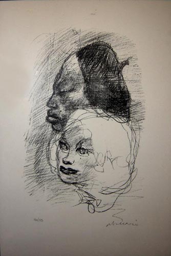 Mino Maccari (Siena, 1898 – Roma, 1989). Volti. Litografia, firma in basso a...
