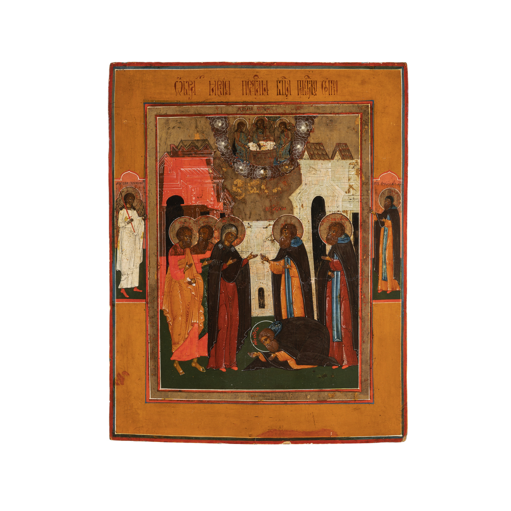 Icona russa raffigurante l'apparizione della Madre di Dio a S. Sergio di Radonez