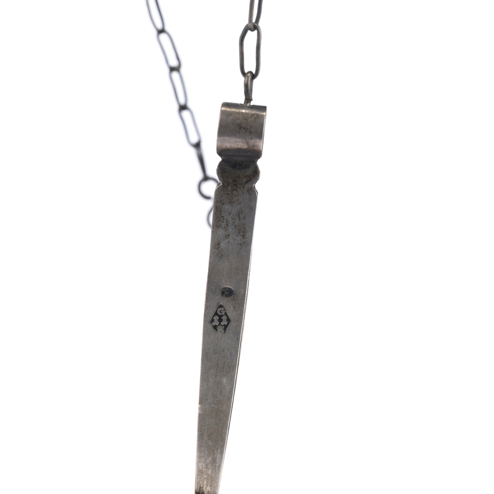 With female figure regent silver container for oil with accessories hanging from chains