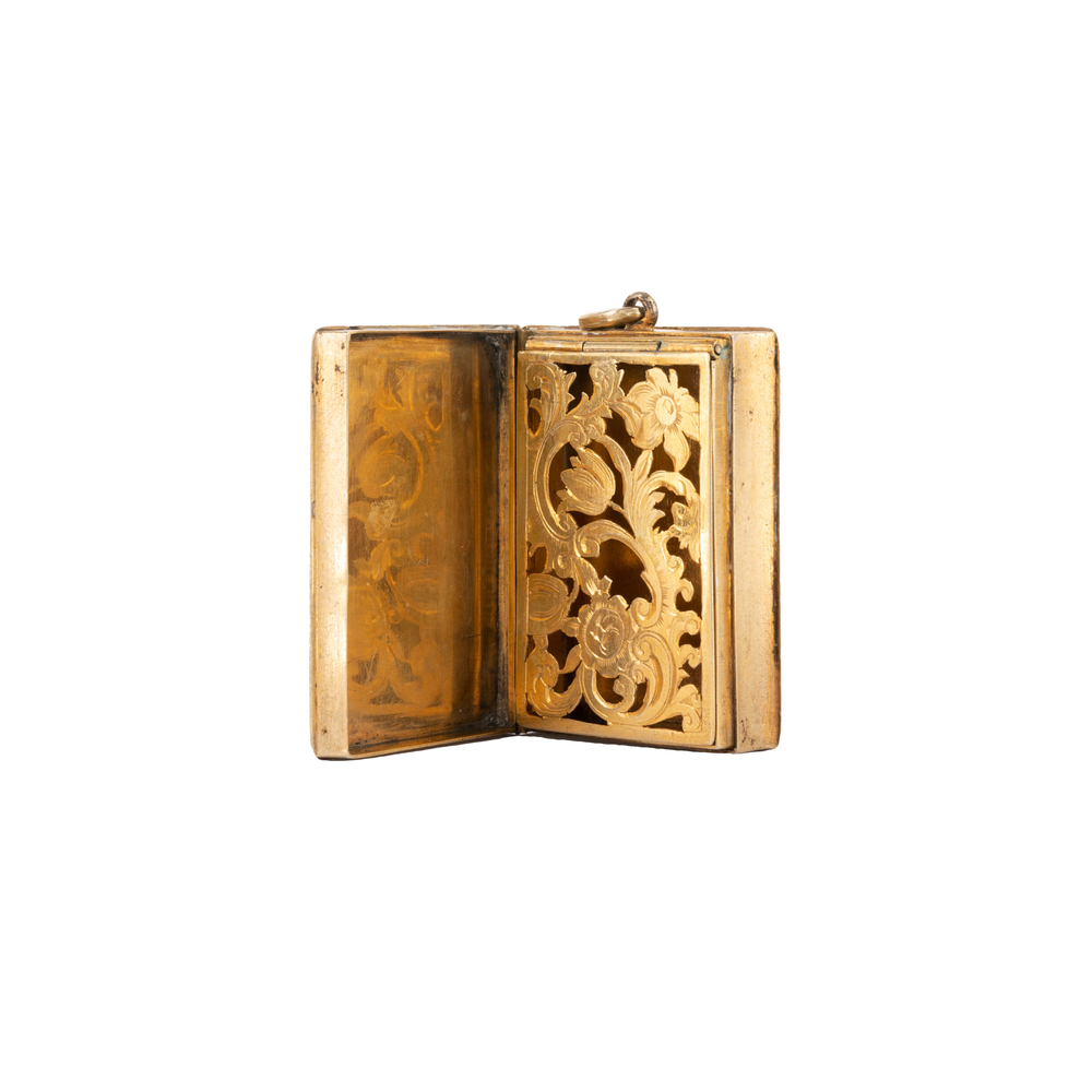 Corpo finemente decorato , al fronte con scena galante e al retro con dedica datata 20 febbraio 1848