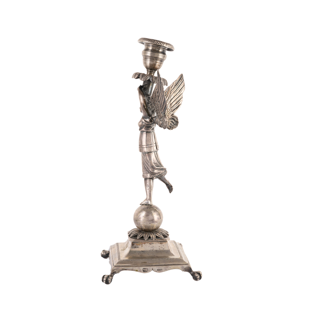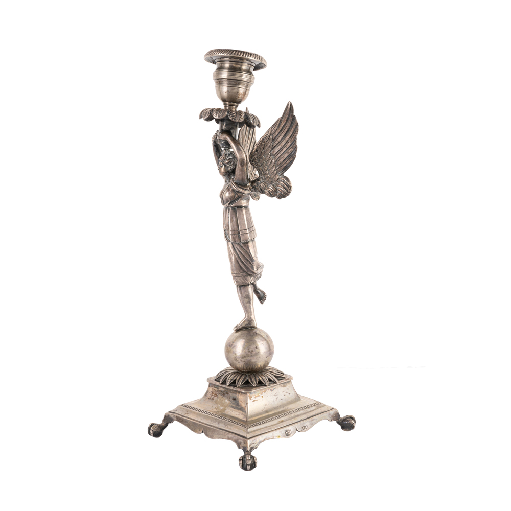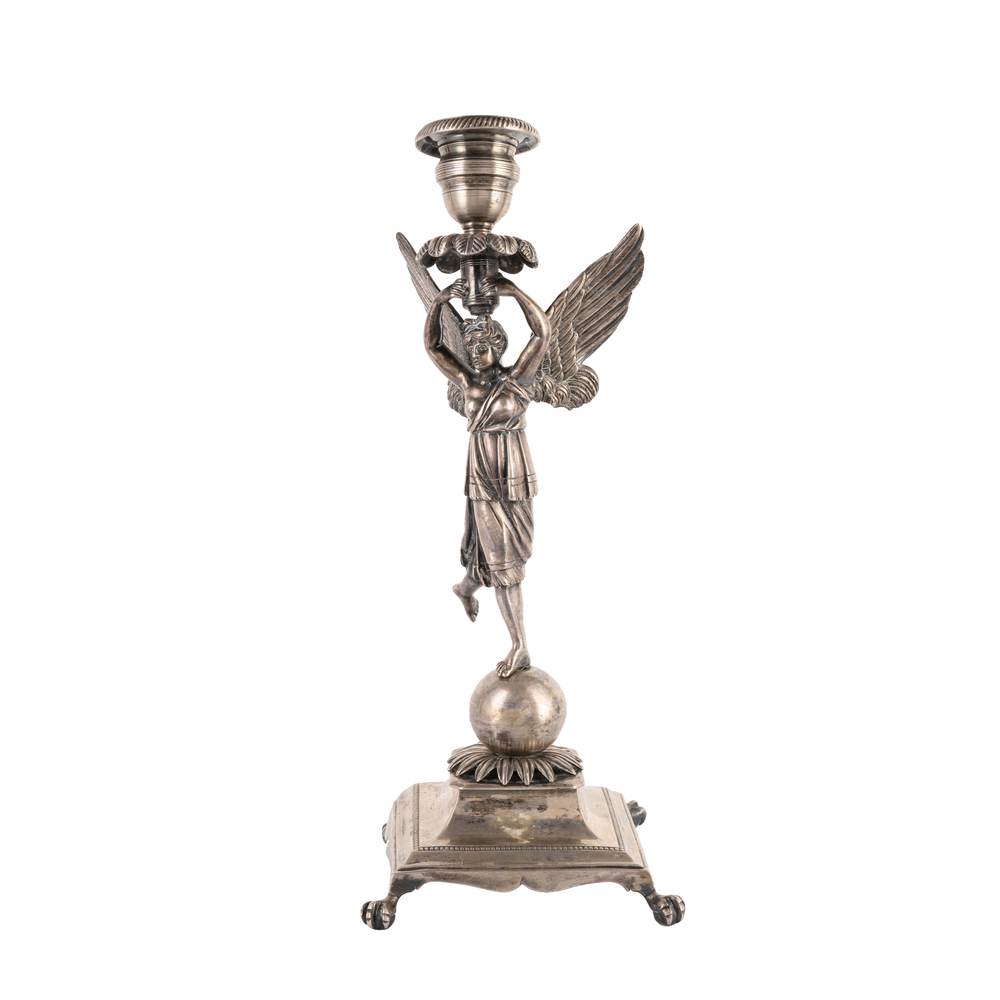 Candeliere in argento con fusto raffigurante la Vittoria Alata