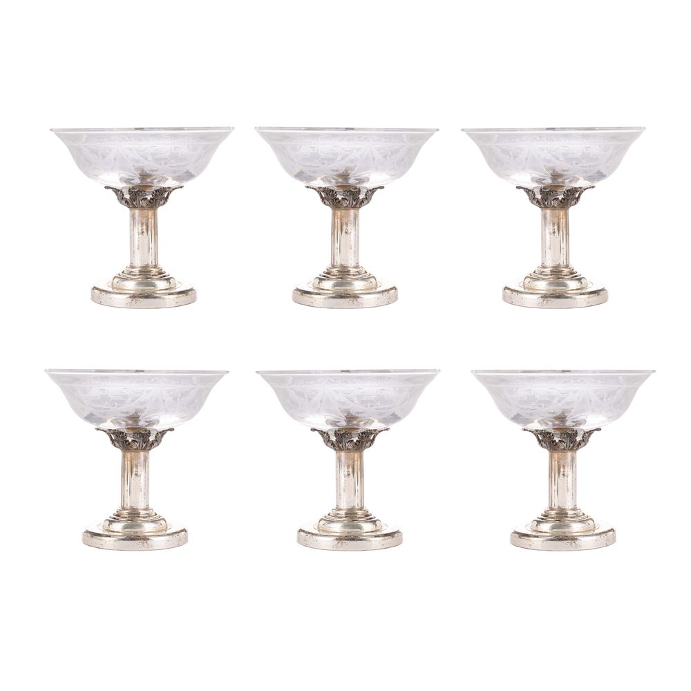 Sei coppe in cristallo finemente decorate, firmate sul bordo