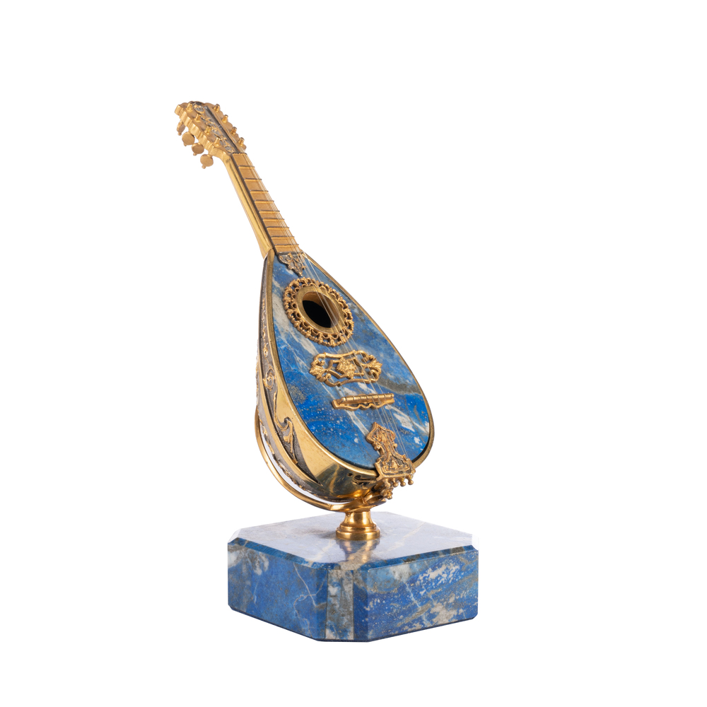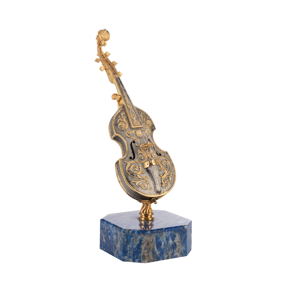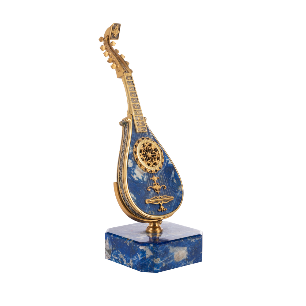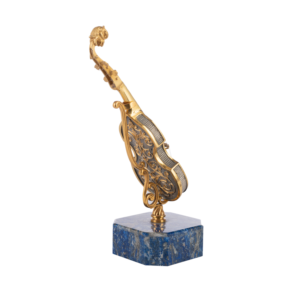 Tre modelli di piccoli strumenti musicali in pietra dura e argento dorato