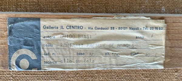Guido Biasi "Portrait presumé de borges" 1967 olio su tela cm 100x50 firmato e d