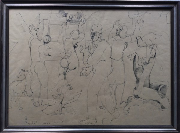 Mario Vellani Marchi "Studio" 1965 inchiostro su carta cm 48,5x67 firmato, datat