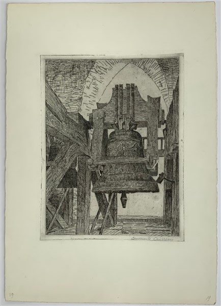 Benvenuto Disertori "La grande campana a Perugia" 1912-1916 Acquaforte (lastra c