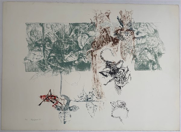 Renzo Vespignani "Senza titolo" 1965 litografia a colori - prova d'artista cm 71
