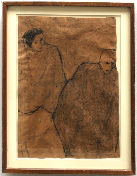 Firma indecifrata "Senza titolo" carboncino su carta cm 48x36 firmato e datato
