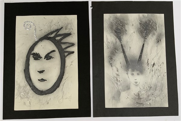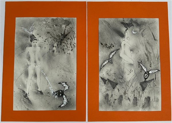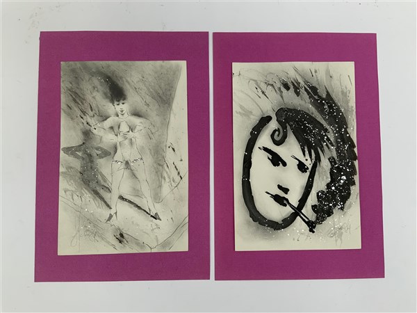 Lotto composto da dodici tecniche miste su carta raffiguranti figure