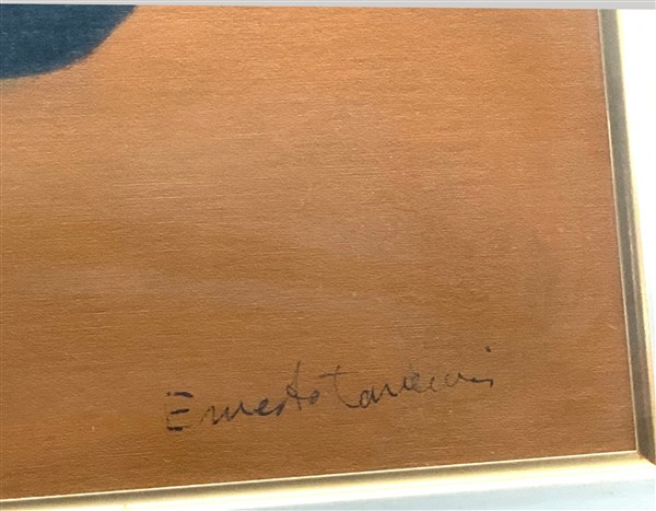 Ernesto Tavernari "Il sole scalda ancora" 1974 tecnica mista su tela cm 70x50 fi