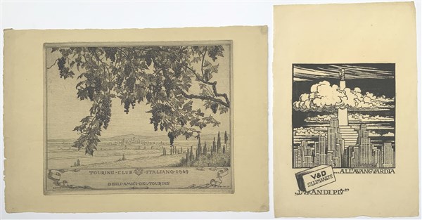 Lotto composto da un'acquaforte "Veduta con tralci di vite" 1949 e una incisione