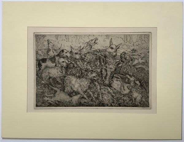 Carlo Servolini "L'assalto" acquaforte (lastra cm 18x27,5; foglio cm 25x32,5) f