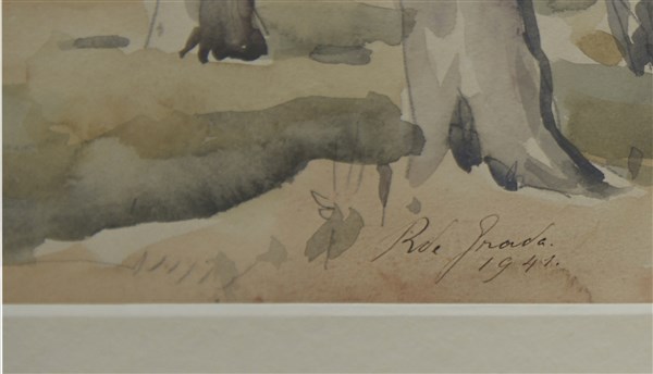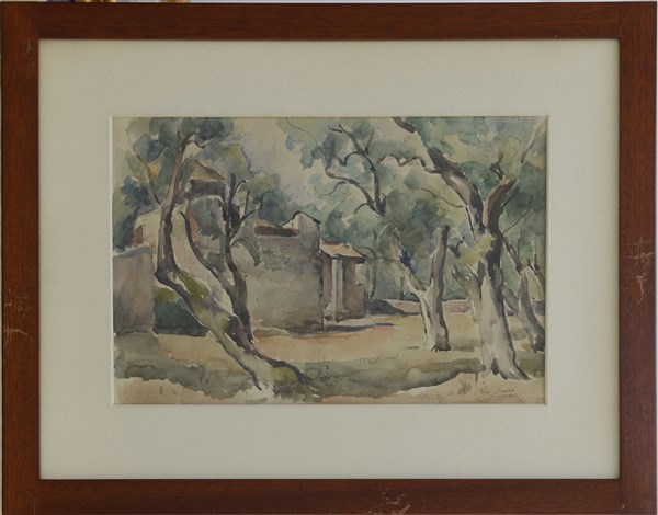 Raffaele De Grada "Paesaggio con casolare" 1941 tecnica mista su carta cm 31x46