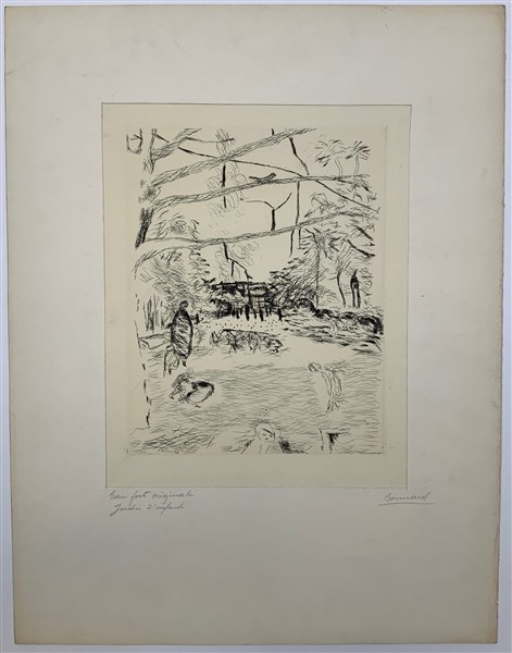 Pierre Bonnard "Le Parc Monceau" 1937 acquaforte (lastra cm 33,5x26,5; foglio cm