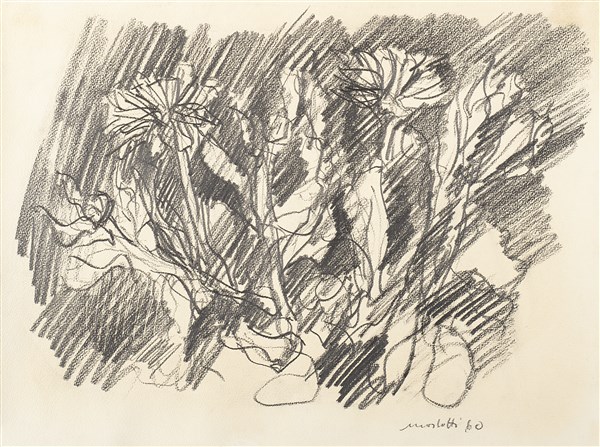 Ennio Morlotti "Calendole" 1960 carboncino su carta cm 33x44 Firmato e datato in
