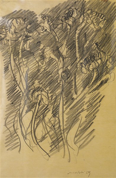 Ennio Morlotti "Girasoli" 1959 matita su carta cm 45x30 Firmato e datato in bass