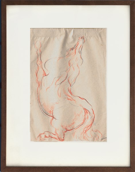 Aligi Sassu "Cavallino rampante" matite colorate su carta velina cm 32,4x22,3 f