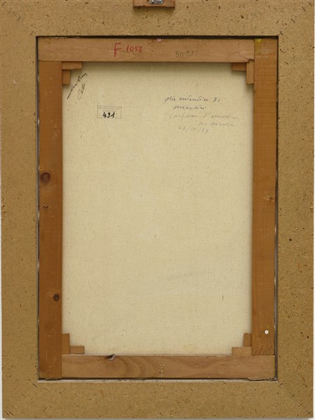 firmato in basso a sinistra; firmato, datato e autenticato al retro. In cornice (lievi difetti)