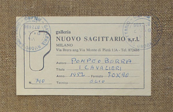 Pompeo Borra "Cavalieri" 1952 olio su tela cm 70x90 firmato in basso a destra. I