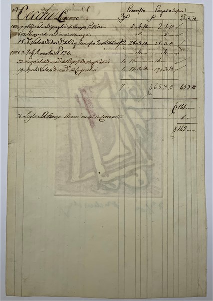 acquaforte e acquatinta a colori su carta antica di riutilizzo