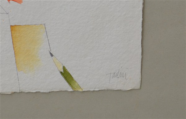 Emilio Tadini "Senza titolo" Anni '80 circa tecnica mista su carta cm 25x31 Firm