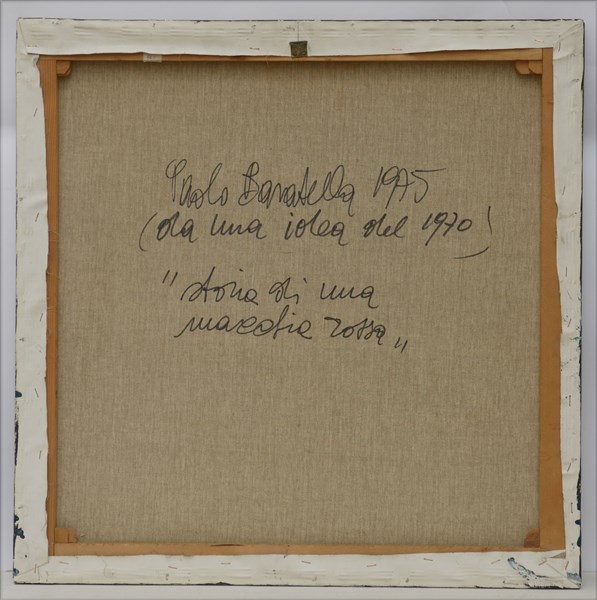 Paolo Baratella "Storia di una macchia rossa" 1975 tecnica mista su tela cm 70x7