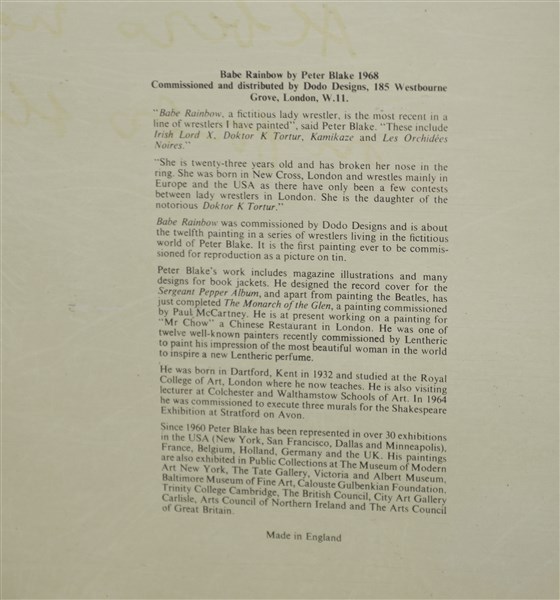 Peter Blake "Babe Rainbow" 1968 serigrafia su latta cm 66x44 Dodo Design, Londra