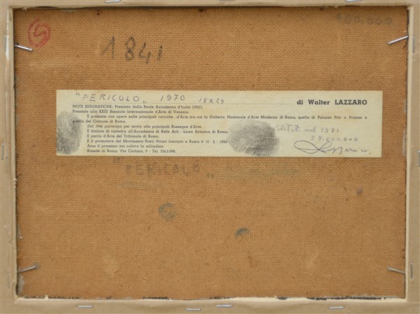 Lot 400 | Walter Lazzaro "Pericolo" 1970 olio su faesite cm 18,5x24,5 firmato in basso a d