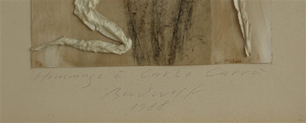 Jurgen Brodwolf "Omaggio a Carlo Carrà" 1988 tecnica mista e collage su carta cm