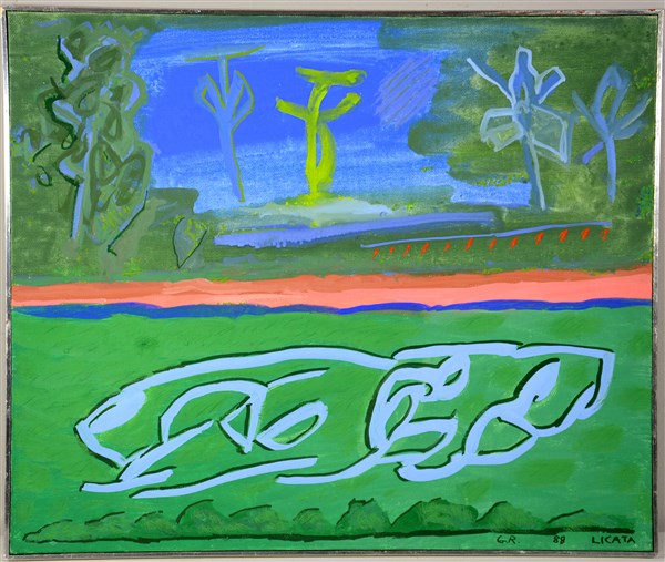 Riccardo Licata "Senza titolo" 1988 tempera su tela cm 46x55 firmato e datato in