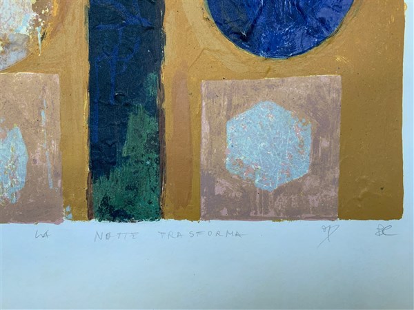 Bruno Ceccobelli "La notte trasforma" serigrafia materica a colori cm 78,5x58 n
