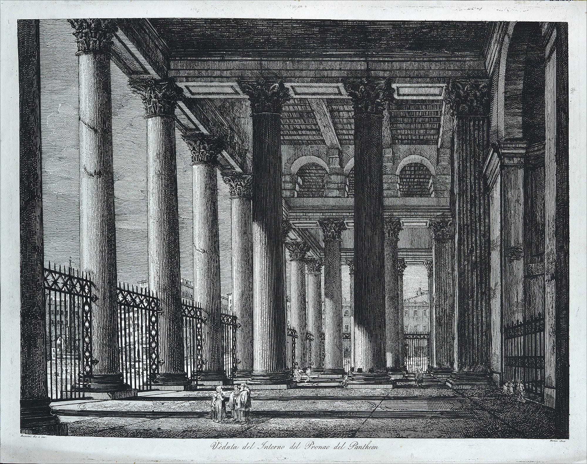 Luigi Rossini (1790-1857) Veduta del Interno del Pronao del Pantheon Acquaforte, mm. 455x575 (foglio); mm. 440x550 (lastra) Rossini dis. e inc., Roma 1820