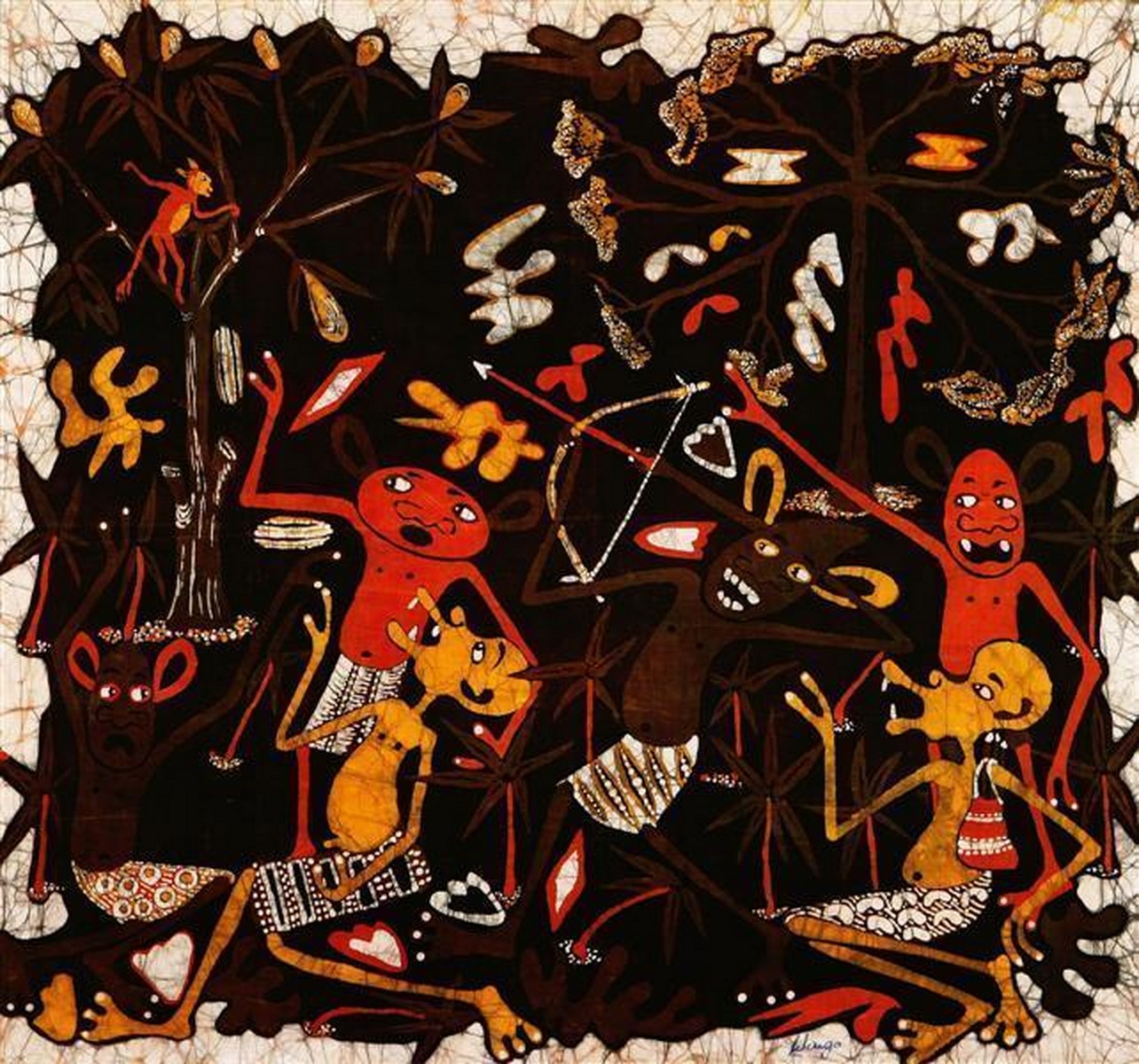 LILANGA GEORGE (1940 - 2005) Senza titolo. Batik. Cm 98,00 x 91,00. . Cornice presente