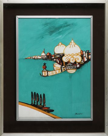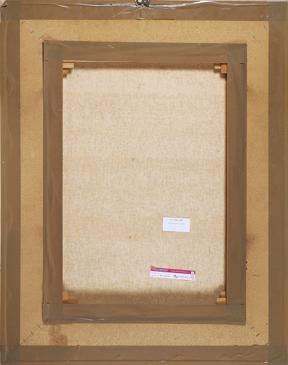 BRINDISI REMO (1918 - 1996) Venezia. Olio su tela . Cm 50,00 x 70,00. Firma in basso a destra. Al retro reca il cartiglio del Catalogo Generale Remo Brindisi, Galleria Pace, Milano. Opera archiviata presso il Catalogo Generale Remo Brindisi, a cura della Galleria Pace, come da documentazione fotografica riportante il relativo numero d'inventario. Cornice presente