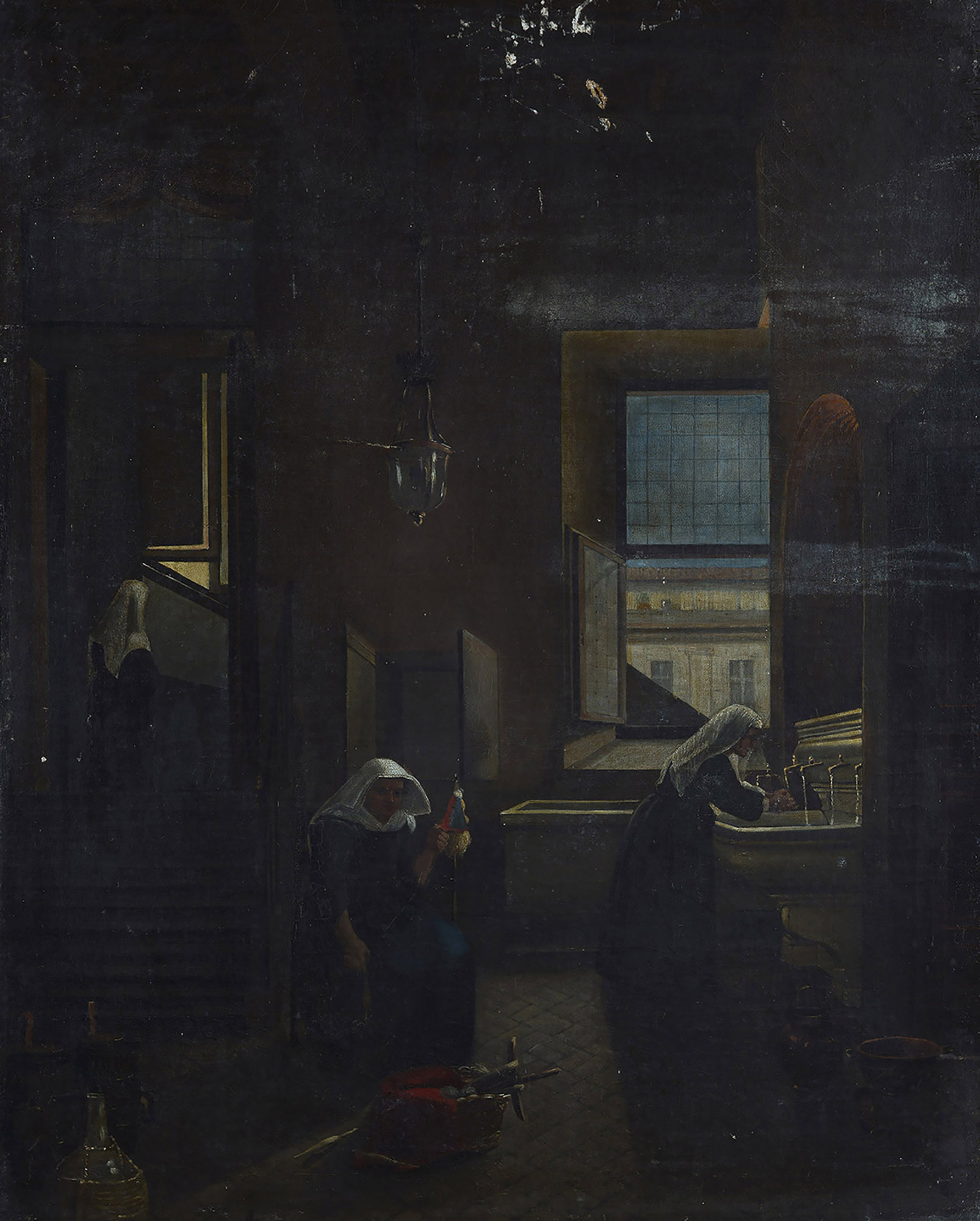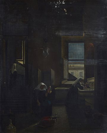 Anonimo, XIX sec. Interno con monache Olio su tela, cm. 61,5x49