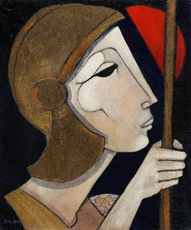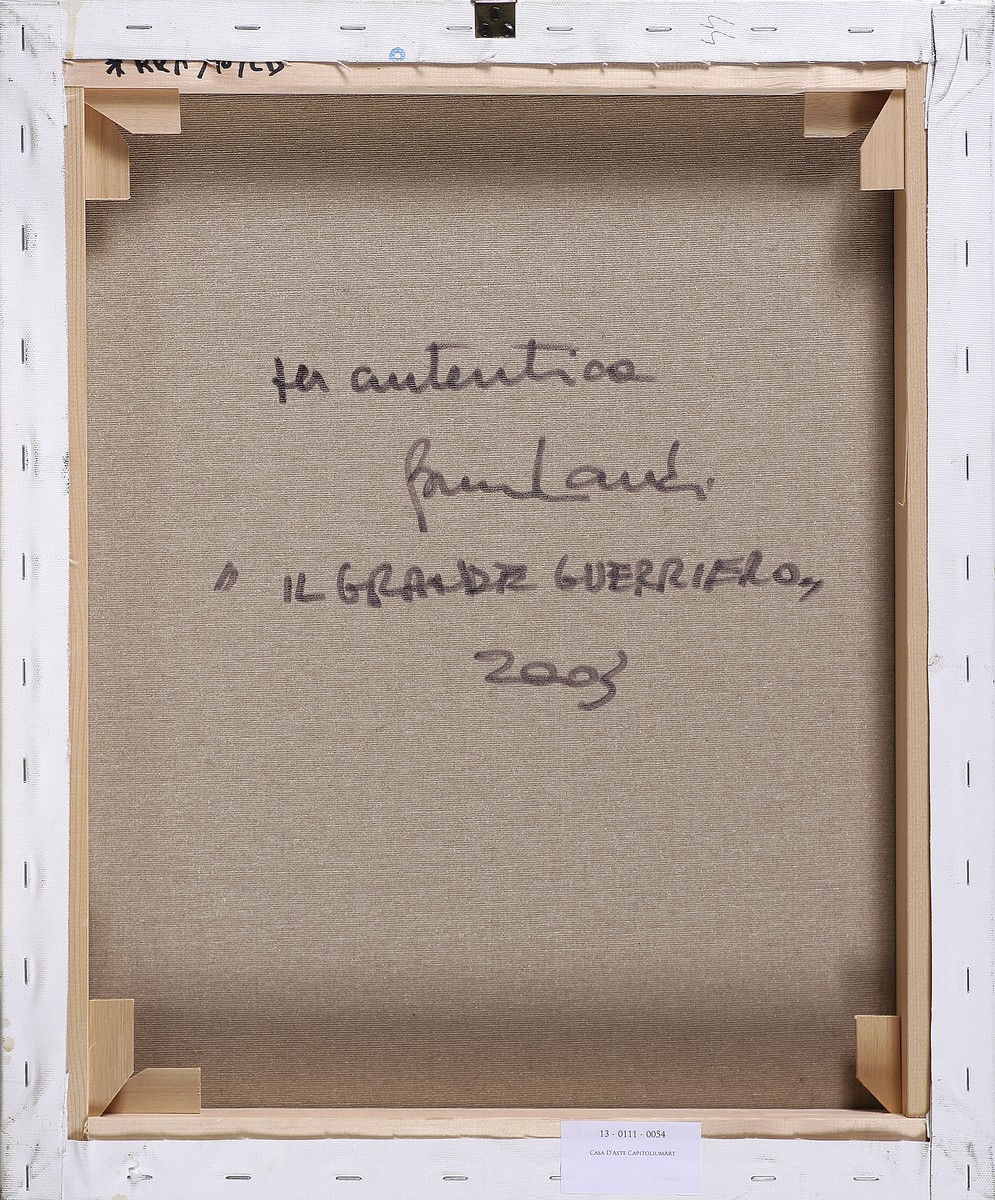 LANDI BRUNO (n. 1941) Il grande guerriero. 2003. Olio su tela . Cm 50,00 x 60,00 x 4,00. Firma in basso a sinistra. Al retro firma per autentica, titolo e data. Opera archiviata presso l'Archivio fotografico generale delle opere di Landi Bruno come da documentazione fotografica allegata riportante il relativo numero d'archivio.